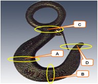 吊钩钩口部位和弯曲部位发生永久变形时,修复后可以使用。
